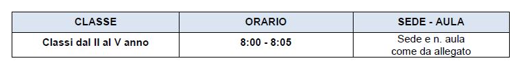 • Le lezioni si svolgeranno in modo regolare secondo l’orario delle classi;