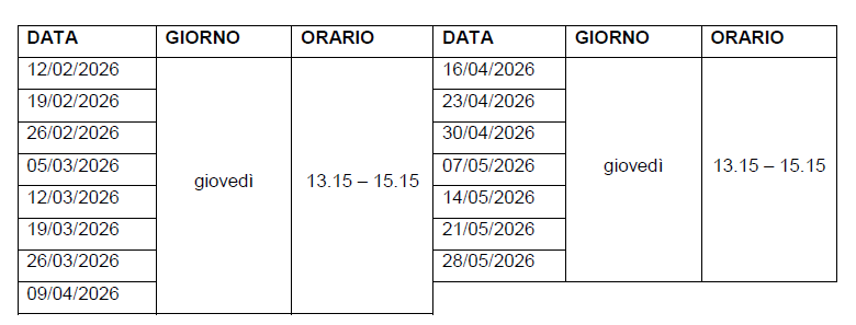 Si comunica, nell’ambito dei percorsi educativi e formativi per il potenziamento previsti all’interno del progetto “R-Estate al Capece”, l’elenco degli studenti ammessi al corso “Math help_biennio”. Il corso sarà tenuto dalla prof.ssa Luciana Pastore con il tutor prof. ssa Patrizia Giannuzzo e avrà inizio giovedì 12 febbraio 2026, dalle ore 13.15 alle ore 15.15, nell’Aula n. 8 secondo il seguente calendario: