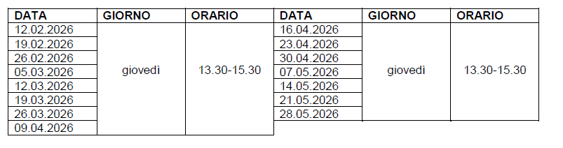 Il corso sarà tenuto dalla prof.ssa Maria Grazia Greco con il tutor prof.ssa Rita Mele e avrà inizio giovedì 12 febbraio 2026, dalle ore 13.30 alle ore 15.30 nell’aula n. 20 secondo il seguente calendario: