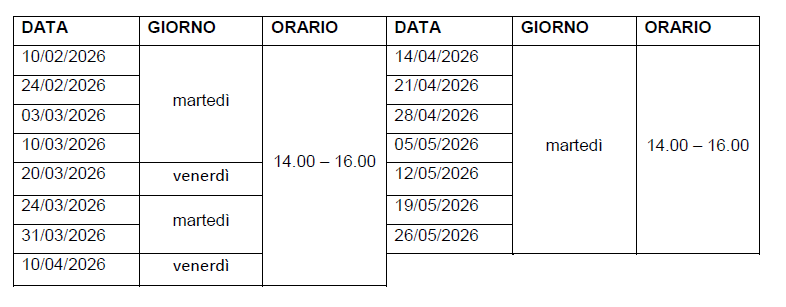 Il corso sarà tenuto dalla prof.ssa Angela De Simone con il tutor prof.ssa Emilia Carretta e avrà inizio martedì 10 febbraio 2026, dalle ore 14.00 alle ore 16.00, nell’aula n.19 secondo il seguente calendario: