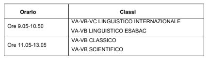 Le classi rispetteranno la turnazione in Aula Magna secondo la tabella seguente; si raccomanda la massima puntualità.