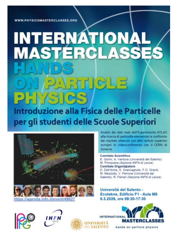 Maggiori informazioni sono reperibili sul sito dell’evento: https://web.le.infn.it/masterclasses/ Il Docente coordinatore annoterà sul registro elettronico i nominativi degli studenti impegnati