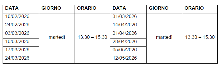 Il corso sarà tenuto dalla prof.ssa Eufemia Fantastico con il tutor prof. Luciana Pastore e avrà inizio martedì 10 febbraio 2026, dalle ore 13.30 alle ore 15.30, nell’aula n.18 secondo il seguente calendario: