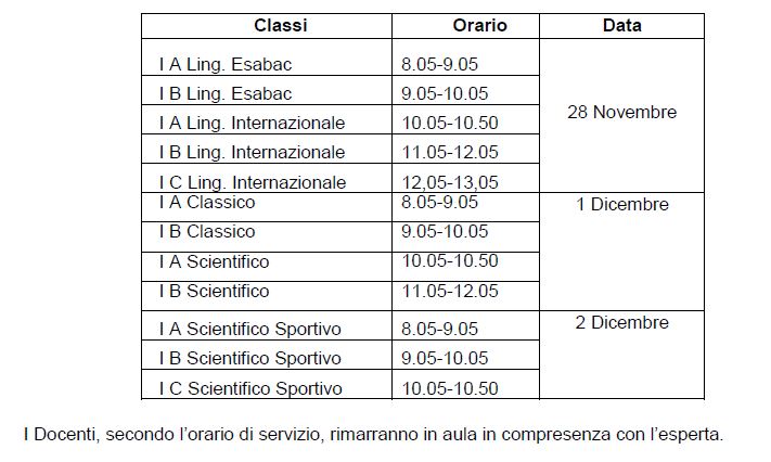 In continuità con le linee programmatiche del PTOF 2025/2026, tutte le classi prime incontreranno in aula la Dott.ssa Veronica Chiarillo, nutrizionista della LILT, sul tema “One Health: alimentazione sana e sostenibile per la salute globale”, secondo il seguente calendario: